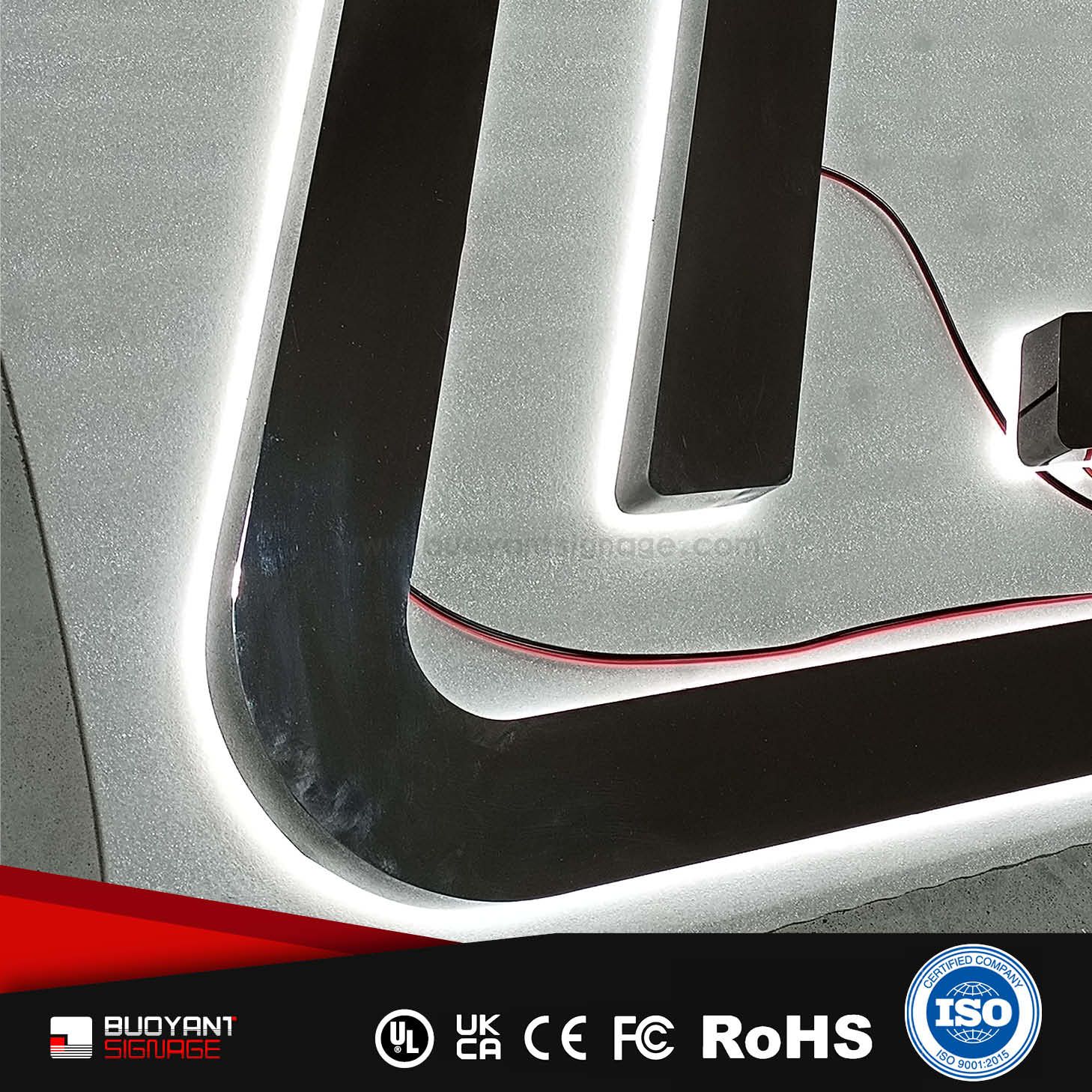 Professional Custom Stainless Steel LED Backlit Signs, Project Customized for Brand Visual((A3DIS-B26silver))